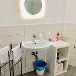 A további kényelem érdekében az apartman bidé, külön WC és zuhanyzó kényelmét biztosítja. Továbbá a fürdőszobában biztosított hajszárítót, háziköntösöket és törölközőket is élvezheti.
